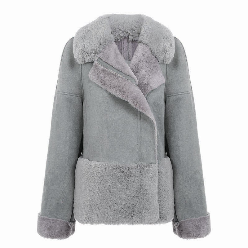 Glamaker Grey streetwear fur teddy jacket Women autumn patchwork chic winter coat china Suede leather womens fur coat teddy coat