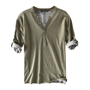 High Quaity Shirts Dress Men 100%Cotton Half Sleeve Henley Collar V Neck Solid Autumn Casual Shirts Hombre Camisa Men Clothes