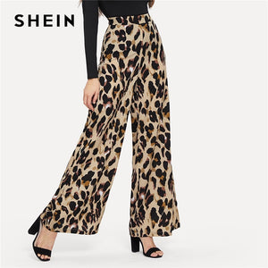 SHEIN Multicolor Modern Lady Casual Leopard Print Wide Leg Mid Waist Loose Pants Autumn Office Lady Workwear Women Trousers