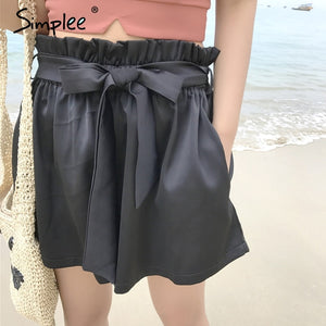 Simplee Ruched sashes high waist shorts women Solid color pocket bud shorts Summer casual streatwear hot shorts