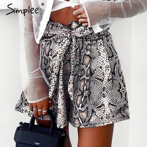 Simplee Sexy snake print shorts women Sash high elastic waist summer casual shorts Vintage streetwear fashion short bottom 2019