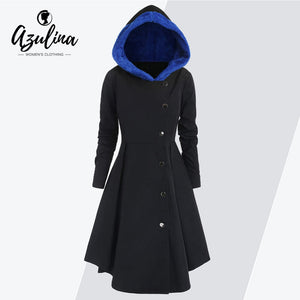 AZULINA Winter Plus Size Asymmetric Fleece Contrast Hooded Skirted Coat Women Coat Single Breasted Color Block Outwear Coats New